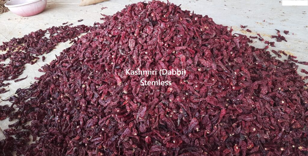raw cotton, and a wide range of dry red chillies including Byadgi